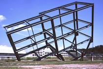 RICHARD WILSON A crocked sky Doesn't it seem strange to you that the sky is always ‘up’? Should we trust something that remains exactly where we expect it to be? Nietzsche warned: “As long as you still feel the stars as being something ‘over you’ you still lack the eye of the man of knowledge” (Nietzsche, 1886). I started to look for crocked skies. I found one in a work by Richard Wilson. Wilson is an artist who does the unexpected. He has cut and rotated a section of a building (Over Easy), shrunk a dissected boat (A Slice of Reality) and famously half-filled a room with engine oil (20:50). Each of the above challenges our sense of everyday reality by changing or transforming something familiar. In comparison, Set North for Japan (74° 33’ 2") is unexpected because it refuses change. Installed in Nakasato, Japan, the metal outline of the artist’s London home is not scaled, not cut and importantly, not rotated. The frame is not altered to accommodate the curvature of the earth but maintains what Wilson describes as 'its exact English perpendicular and horizontal orientation to True North'. For this reason the version of the house we see in Nakasato appears crocked: the roof pitches into the earth, and its foundations are built in the sky. However, once we understand that the orientation of the house is correct according to its exact English orientation, then we are forced to consider the changing orientation of the earth and sky. We live in a planetary age in which, in the words of Paul Virilio, “everything is being turned on its head... not only geopolitical boundaries but those of perspective geometry” (Virilio, 1997). Set North for Japan (74° 33’ 2") reminds us of this. It makes us aware of the fact that our skies are not only up above but, as captured in the image of Leonov walking in orbit above the earth, they are also below. We need to pay more attention to our sky for it is on the move. It is no longer to be found exactly where we expect it to be. Images (from top to bottom): 'Set North For Japan' 74 33' 2", Echigo Tsumari Project, Niigata Perfecture, Japan (2000) ‘Set North for Japan’ postcard which has travelled back around the globe from Nakasato to London. Alexei Leonov, his legs visible outside the Vostok 2 space craft on 18 March 1965 (@ Ria Novosti/Science Photo Library)